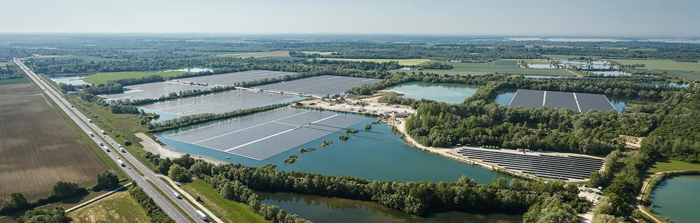 In France, the Les Îlots Blandin project — developed and built by Hanwha Q ENERGY — shows the scale of what’s possible with floating solar farms. The site spans five former gravel pits that had sat idle for years. Today, more than 135,000 solar modules sit across the water, making it the largest installation of its kind in Europe with a total capacity of 74.3 MWp. By working on adaptable industrial land, the project avoided many of the land-use conflicts that often slow large developments and supported a smoother permitting process.